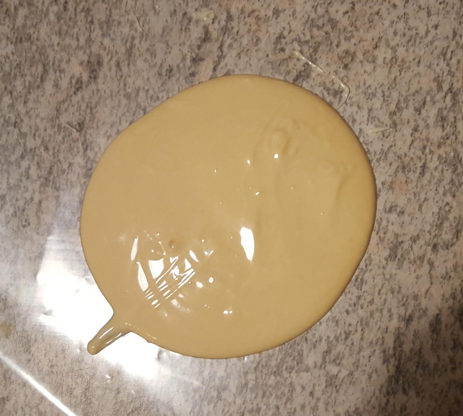 Faites le ensuite remonter à 28-29° en le plongeant une seconde dans la casserole d'eau chaude et mélangez. Une fois la température de 28-29° atteinte, versez le tout rapidement sur une feuille de rhodoïd.