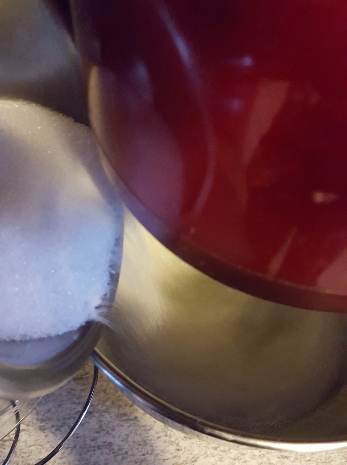 Préparez les 32,5g de sucre semoule. Commencez à monter les blancs en neige en augmentant la puissance de votre robot progressivement.